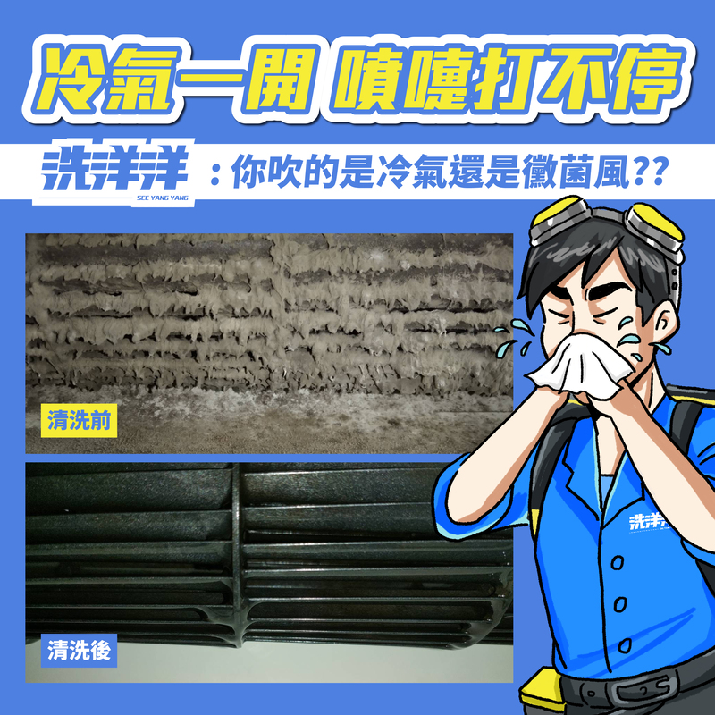 冷氣在吹送的過程中會將空氣中的灰塵、棉絮吸入機體,久而久之機內便成為黴菌塵螨的溫床,而這些髒污在吹送過程瀰漫在室內空間。冷氣長期未清洗,等同於反覆呼吸著充滿髒污的空氣,可能會導致支氣管、呼吸道過敏,家中有老人及過敏兒的更是要注意才行。