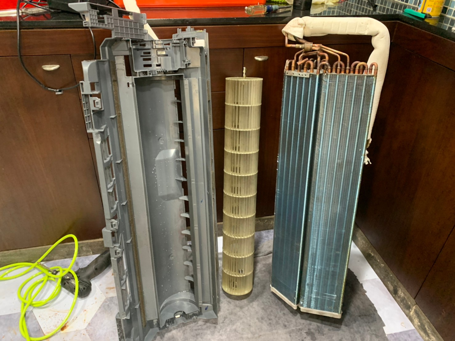 直視冷氣內部,滿滿的污垢吹入家裡環境中,冷氣真的需要定期清洗!