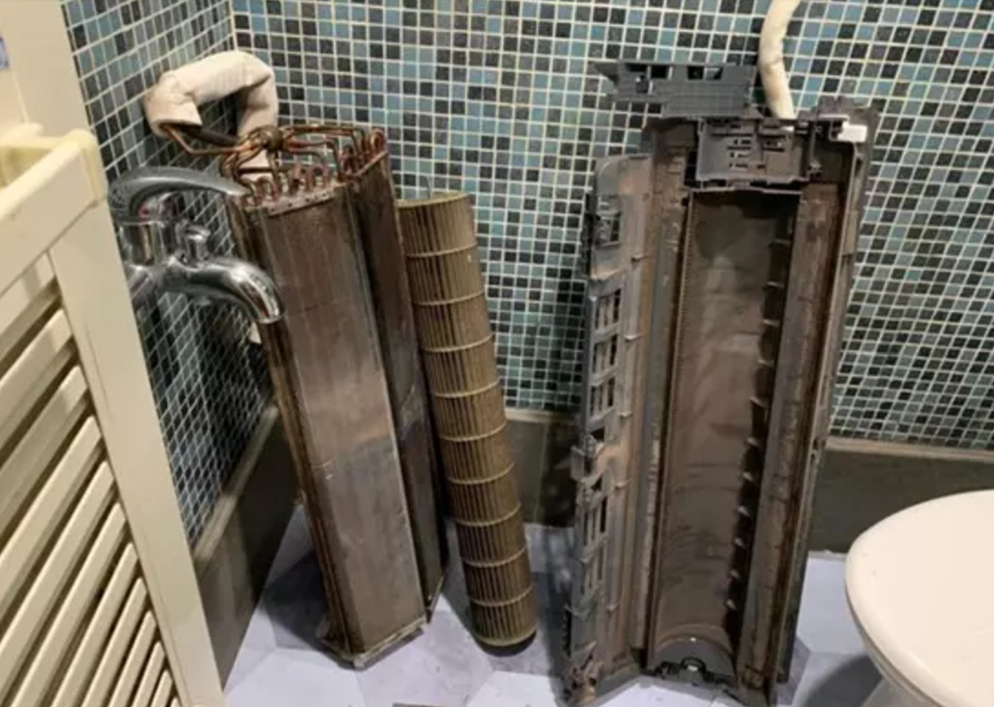 什麼叫深層?不是只有拆濾網沖沖水這麼簡單,真正專業的會幫你拆開整台機器,連風鼓、冷排、集水盤這些藏污納垢最嚴重的地方都會完整拆出來,用高壓水槍仔細沖洗,加上專業的殺菌劑和除霉處理,不只把黴菌清乾淨,還能順便消毒,連空氣都變得比較乾淨,不會再有那種悶悶臭臭的感覺。