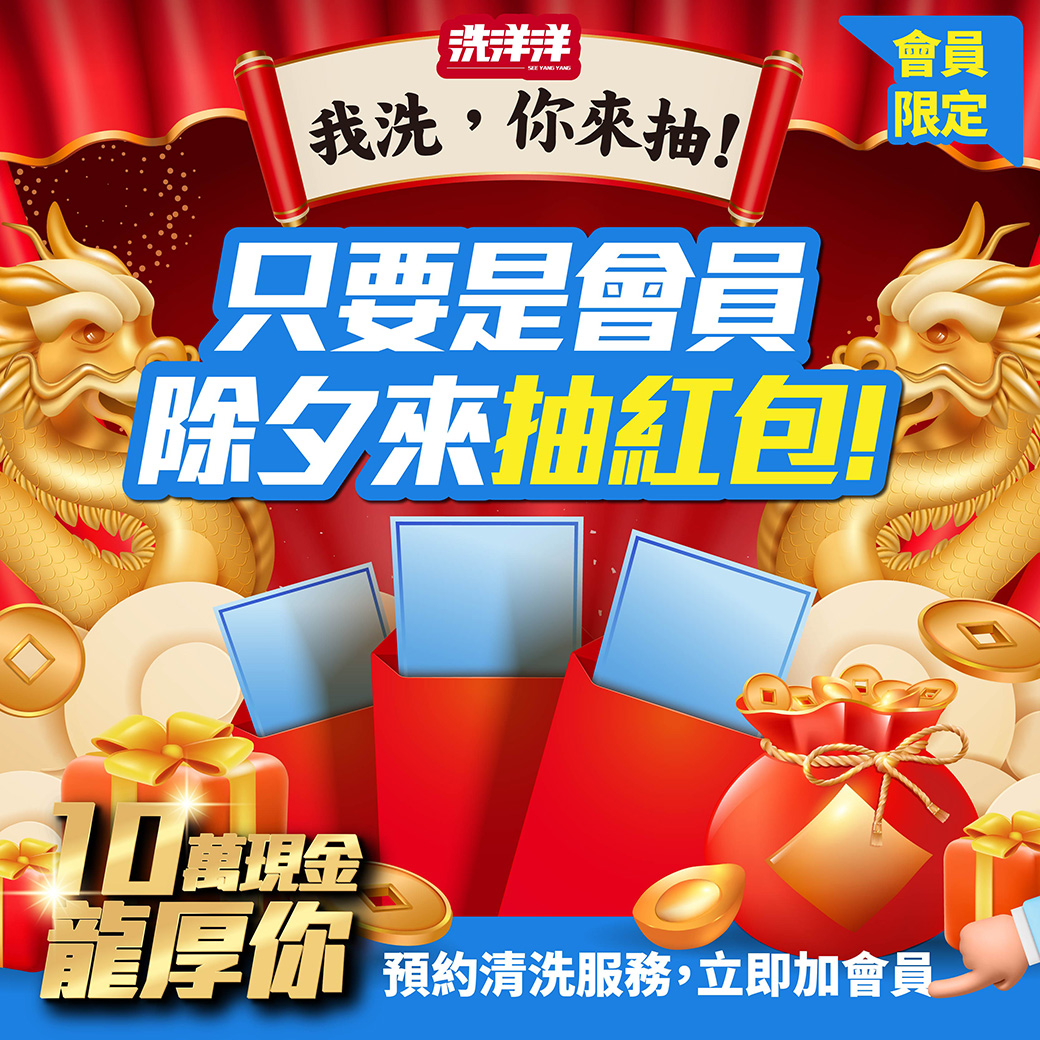 只要加入洗洋洋會員,就能在除夕抽10萬現金紅包!